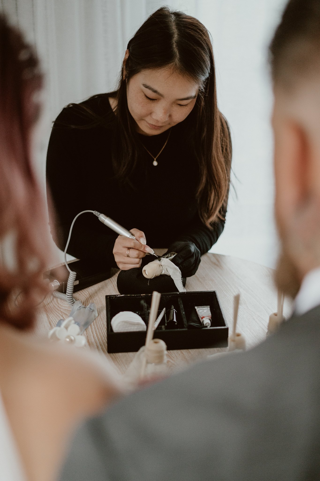 I recommend letting your guests know ahead of time that there will be a live engraver or have your MC make a little announcement. That way, no one will miss out on the fun and everyone will have a chance to take home a little keepsake 🤍