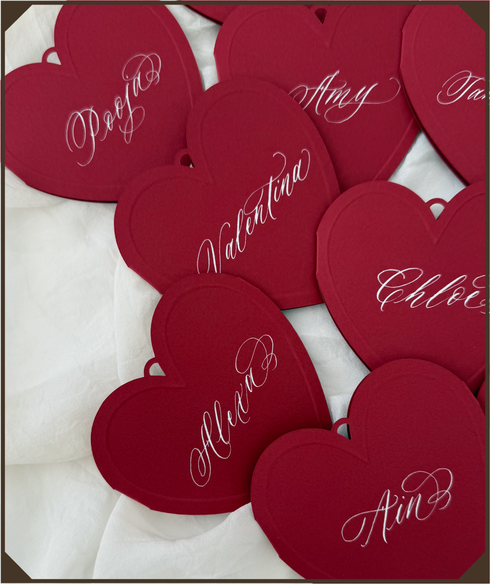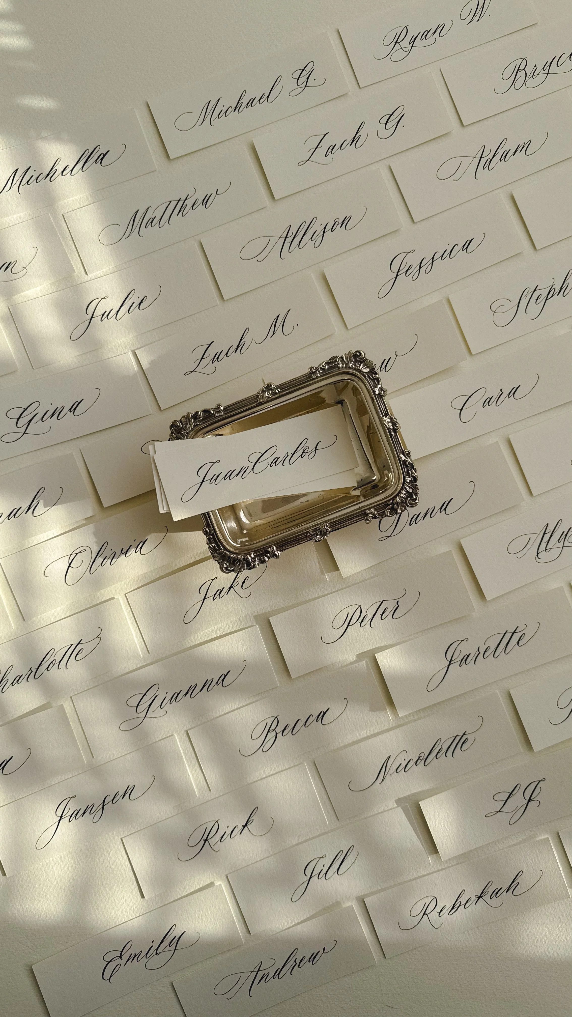 From interactive live calligraphy for your event, bespoke place cards, and engraved keepsakes, we’re all about the small details that make every moment feel intentional.